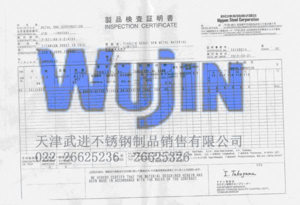 進(jìn)口新日鐵不銹鋼管質(zhì)保書