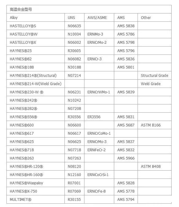 哈氏合金母材對(duì)應(yīng)焊材對(duì)照表(2)