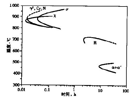 00Cr25Ni7Mo4N不銹鋼管化學(xué)成分和顯微組織 00Cr25Ni7Mo4N化學(xué)成分和顯微組織 SAF 2507鋼的典型化學(xué)成分見表1 表1 SAF 2507超級雙相不銹鋼的化學(xué)成分,wt% 鋼種 C max Si max Mn max S max P max Cr Ni Mo N Cu UNS S32570 0.030 0.80 1.20 0.020 0.035 24.0∕26.0 6.0∕8.0 3.0∕5.0 0.24∕0.32 0.50 SAF 2507 0.03 0.8 1.2 0.02 0.035 25 7 4 0.3 此鋼經(jīng)固溶處理后,兩相α/γ比約為50/50。高溫下兩相組織比常規(guī)雙相不銹鋼要穩(wěn)定,無疑對焊接HAZ有著重要的意義。 SAF 2507鋼的TTT曲線見圖1。